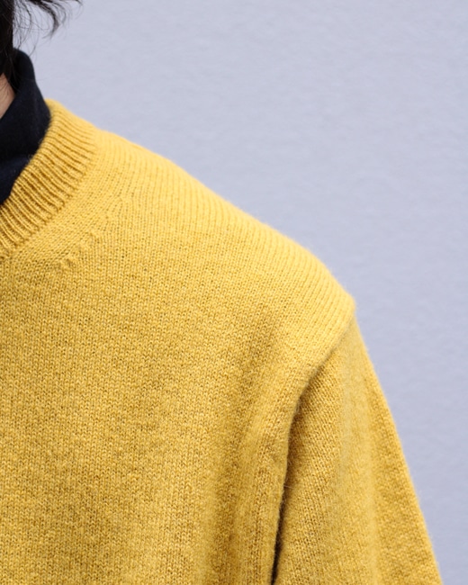 ややゆとりを持たせたアームや身幅、リブのテンションのバランスがとても良く、ベーシックなクルーネックニットながらに程よくリラックスしたような雰囲気のニットです。