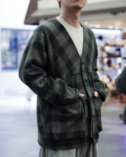 SASSAFRASのジャケットは数多くありますが、そんな中でも気軽に羽織れてインナーとしても着用できる"Digs Crew Cardie Jacket”。