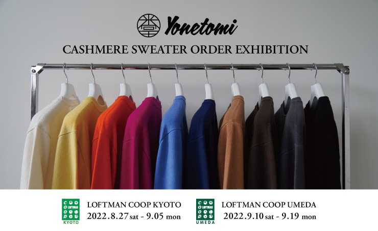 では「YONETOMI CASHMERE SWEATER ORDER EXHIBITION」の販売分のラインナップをご覧下さいませ。