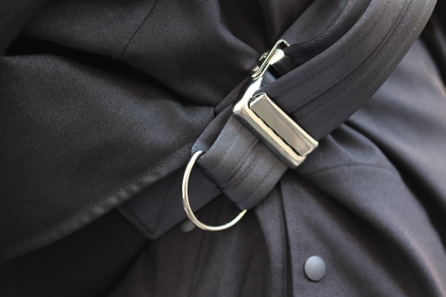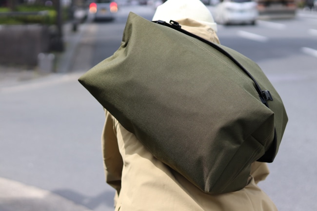 ショルダーのベルトは高級車に採用されるシートベルト素材。高強度なこの素材をさらに重ね合わせることで三重構造にしており、抜群の耐摩耗性、耐久性を誇る。