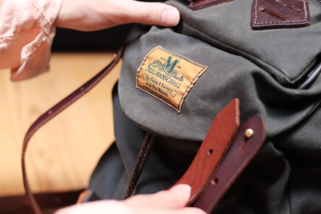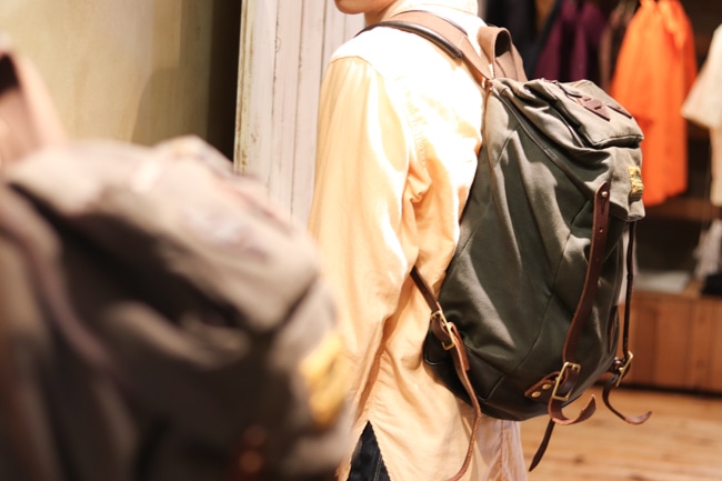使用する素材のほとんどが天然素材で、肉厚なマックスウェイトキャンバスや4mm厚にも及ぶサドルレザー、銅リベット、真鍮製のオリジナルバックルなど長年の使用に耐えうるものばかり。