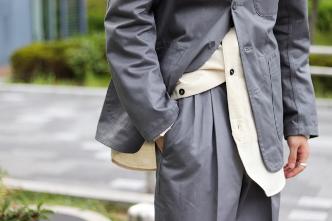 今季は絶妙な濃度のグレーの展開、普段使いはもちろんオフィスカジュアルにも充分対応可能なセットアップ。