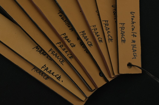 本イベントでは、お好みのバックルと革の種類をお選びいただき、その留め具の寸法に合わせて細野氏に作成していただく完全にオーダーメイドの革ベルトを手に入れていただけます。
