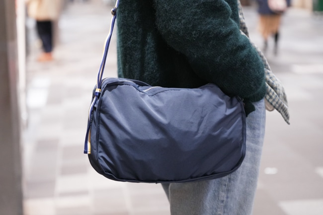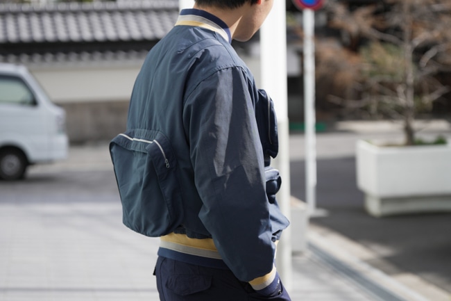 マチ付きのマルチポケットを搭載したデザインも秀逸だが、単に装飾的な意味合いだけにとどまらず、背面のポケットに収納できるパッカブル仕様というのもポイント。