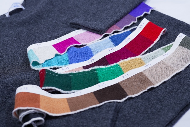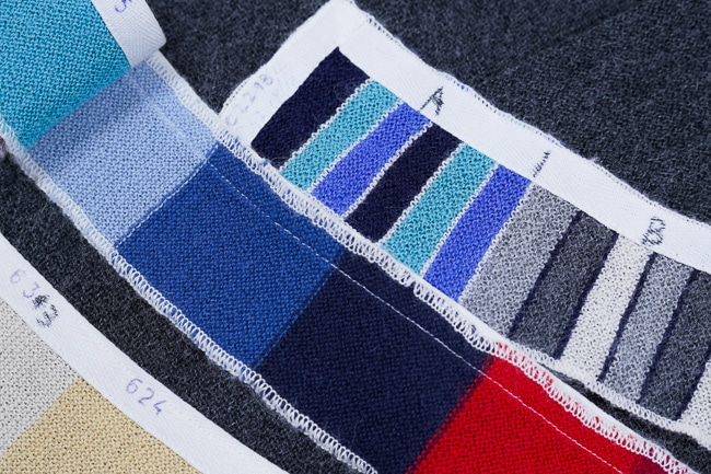 今回のオーダー会では生地は名作のパネルストライプを筆頭に一色からお選びいただき、カーディガン、ベスト、クルーネック、Vネックなど多種多様なモデルからお好みのデザインでオーダーしていただけます。