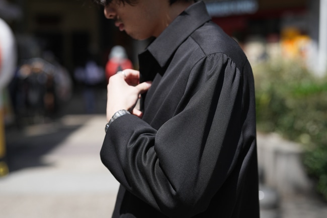 Gorschがアトリエを構える岩手県で国内随一の葡萄産地、紫波郡でブドウ農園を営む佐々木夫妻の装いからインスパイアされた今作は、枝の剪定や摘芽作業、収穫など腕や体を動かすことの多い仕事に向き合ったGorschならではのワークウェア。