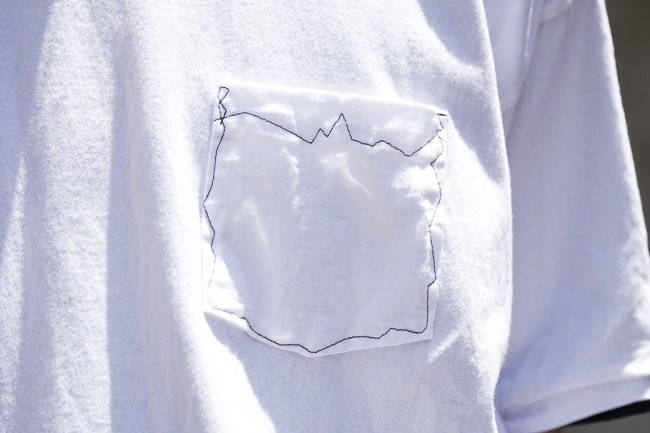 実は2枚のTシャツを重ねて縫い合わせた特殊な作りになっています。