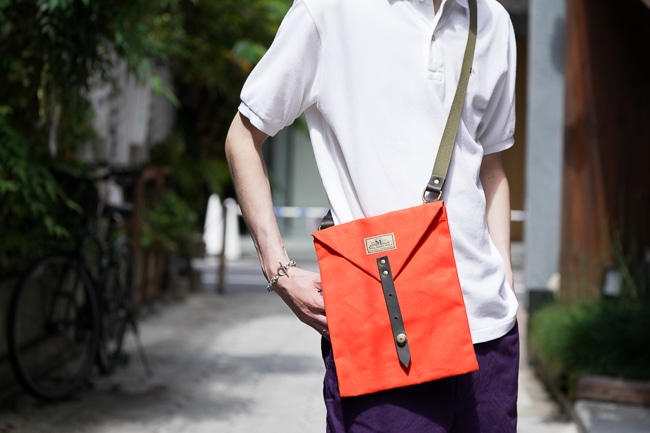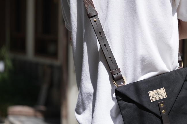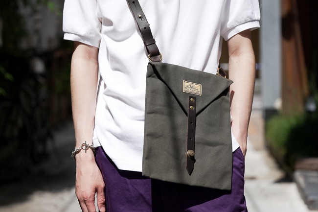 使用する素材のほとんどが天然素材で、肉厚なマックスウェイトキャンバスや4mm厚にも及ぶサドルレザー、銅リベット、真鍮製のオリジナルバックルなど長年の使用に耐えうるものばかりです。