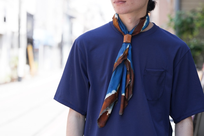 サイズも70cm四方のスカーフなので巻くのはもちろん、垂らしたり、結んだり自在に楽しんでいただけます。
