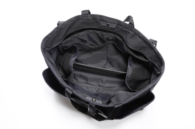 シンプルな外観とは裏腹に、内装されたオーガナイザーにはレンズを入れるためのクッション素材を使用したポケットを配置し、可動式のクッション入り底板は不要時には畳むことでよりコンパクトな使用感を実現。16インチ対応のPCポケットやアダプターやSDカードなど小物の収納に適したマグネットポケット等、モバイル機器との親和性と様々なギミックを隠しもつTOTE型のカメラバッグ。