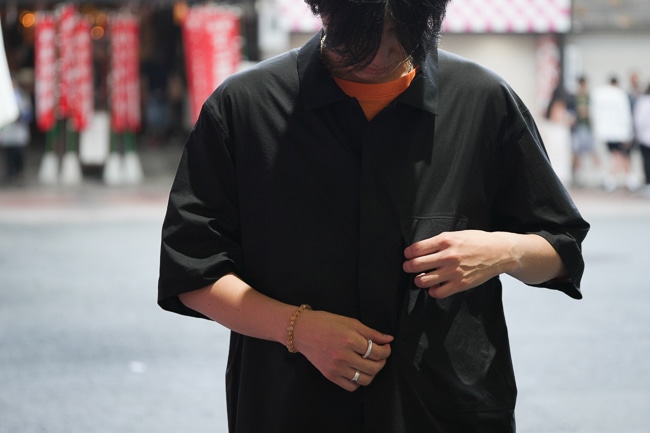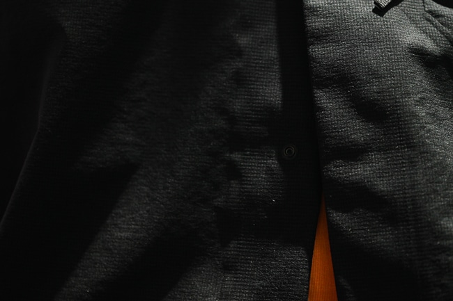 また透けるかどうかの絶妙なラインの生地なので中に明るい色味を取り入れていただいても面白いかと思います。