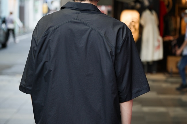 ナイロンリップストップ生地を立体裁断、縫製によって仕立てられた半袖シャツですが、驚くべきはやはりその軽さで、わずか85gほどしかありません。