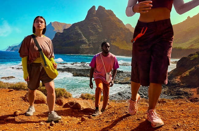 アッパーには上質な撥水ピッグスエードレザーとメッシュのコンビネーションアッパーを採用。ミッドソールは衝撃吸収性・弾発性を向上させたクッション性・安定に優れる軽量EVAフォーム、アウトソールはグリップ力と耐久性に優れた"Vibram TC5+"を搭載し、アウトドアフィールドを始め、タウンユースシーンでも快適性を提供する一足となっています。