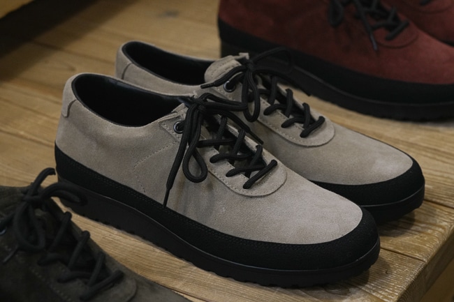 ブランドの創設と共に歴史を歩んできたこのモデルは、デザイナーがフィンランドを旅した時に偶然見つけたヴィンテージのアウトドアシューズから着想を経たモデルで、アッパーには撥水加工を施したスウェードを搭載し、スニーカーでは珍しいフルレザーライニング仕様の品番です。