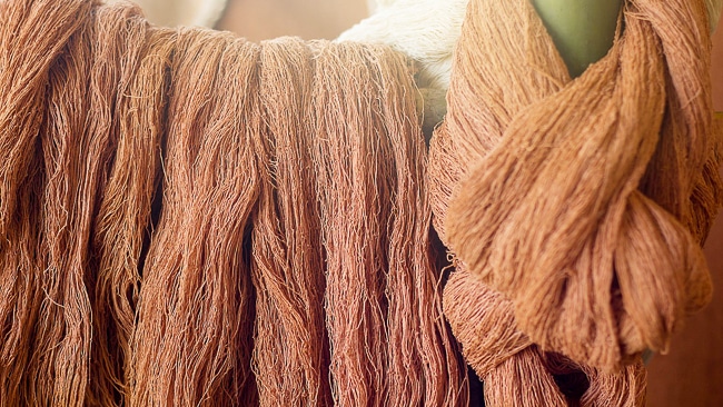 草木染めや藍染めなど他の天然染めとは一味違った深いトーンの色合いはまさに唯一無二と言い切ってしまってもよいでしょう。