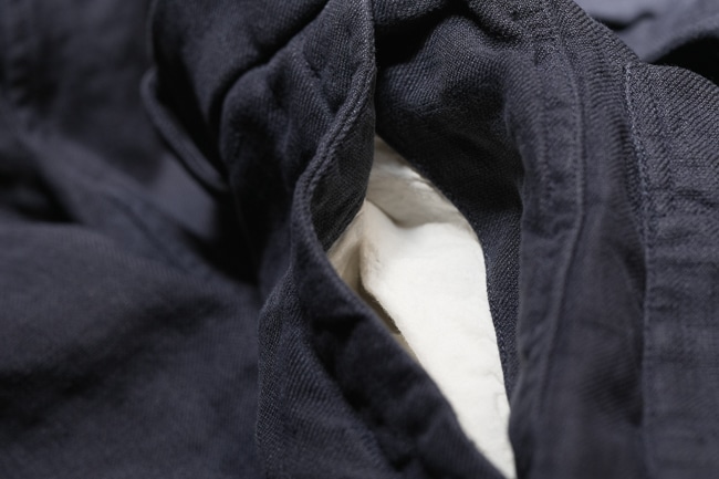 ポケット裏の上部は他と同様にペーパーコットンライニングで、底部はリネン生地を載せています。強度を担保しつつ実際に手が触れる部分はペーパー生地というマニア心をくすぐる仕上がりです。