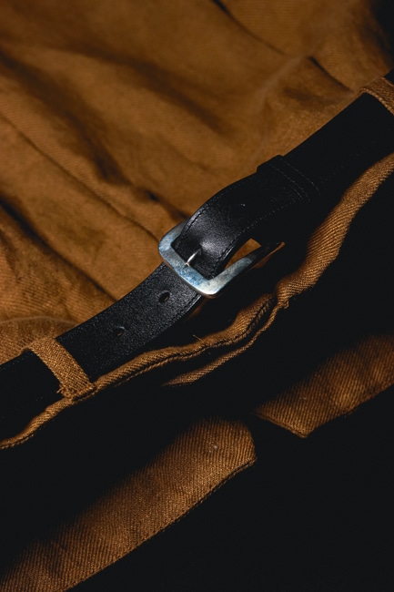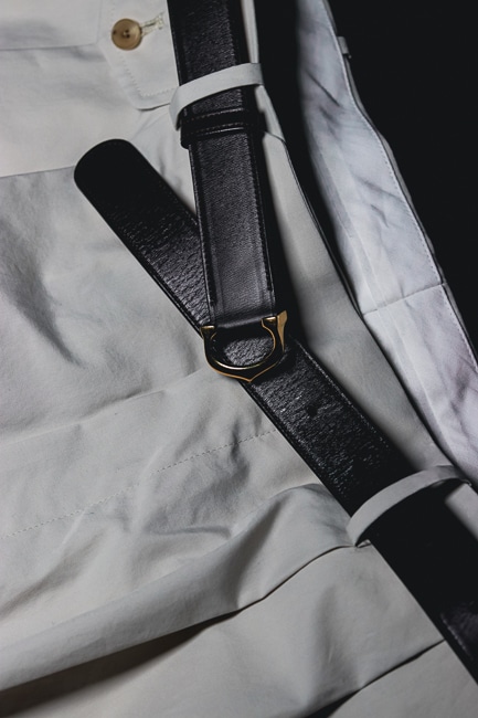 デザイナーで革製品の職人である細野氏による精巧な革ベルトは、量産型の既製品とは全く異なり、メゾン御用達の最高品質の革をそれぞれ寸法の異なるヴィンテージバックルにmm単位で合わせた世界に類を見ない完成度の高さが魅力です。
