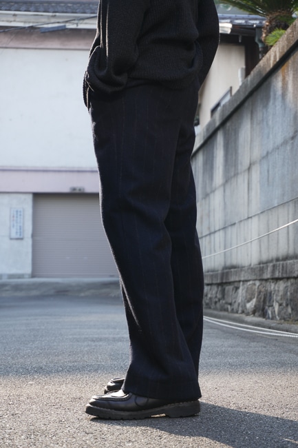 とはいえ昨今の気候では、総裏の三つボタンに同じく裏付きのツープリーツは重すぎる場面も。