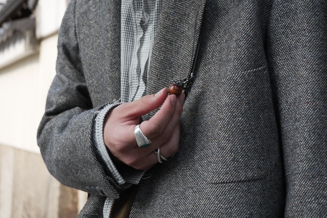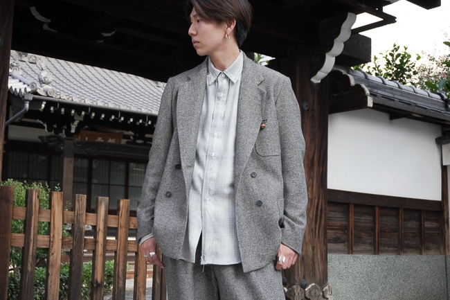 実は一般的なジャケットよりもハーフサイズほどゆとりを持たせて仕立てられており、セットアップでの着用も堅苦しくなることはなく、単体の羽織としても幅広くお使いいただけるはずです。
