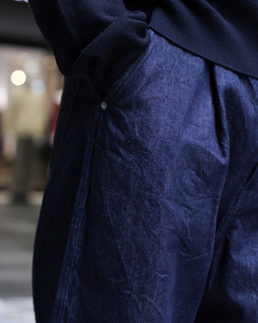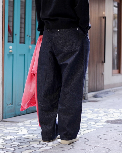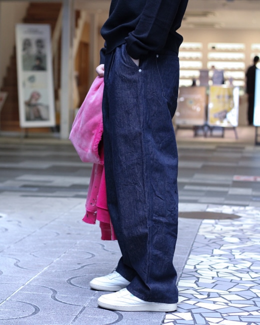 シルエットは、深い股上とゆったりした腰回りから緩やかにテーパーするブランドらしいオリジナルの形。