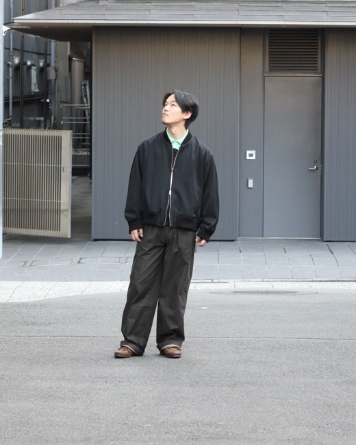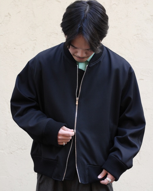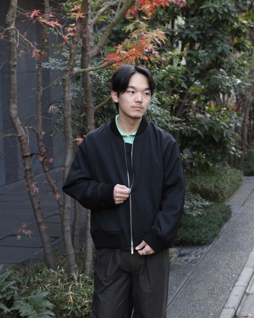 スタイルは襟、裾、袖口にリブが付くボンバージャケット型ですが、エポレットやシガーポケットなどのミリタリーなディテールは排除されていてサイレントな佇まいです。