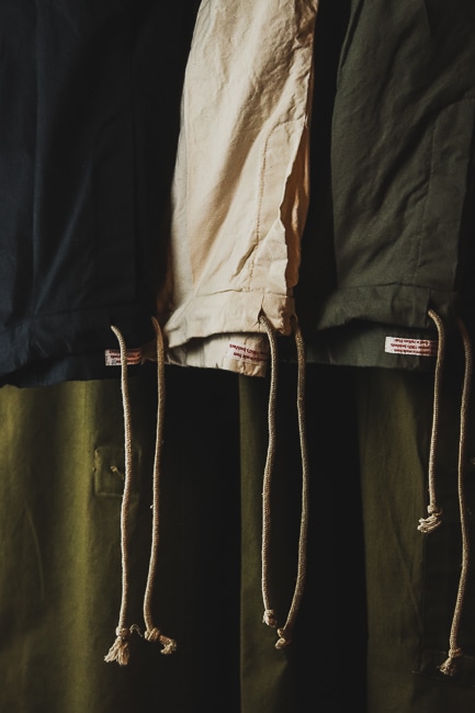 大阪・LOFTMANCOOP E-maでは第一便として、アイコニックなベッドリネンを使ったトラウザーも多数入荷しております。