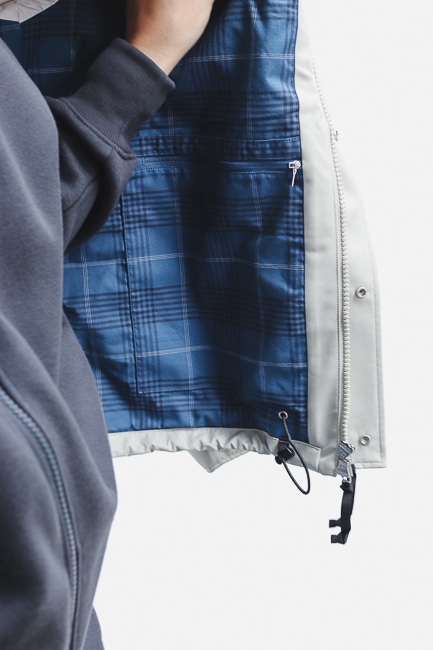 防水透湿素材の2L Polyester Twill GORE-TEX Fabricsを使用し、デザインベースとなるのはUS ARMYのECWCS GORE-TEX Jacket。