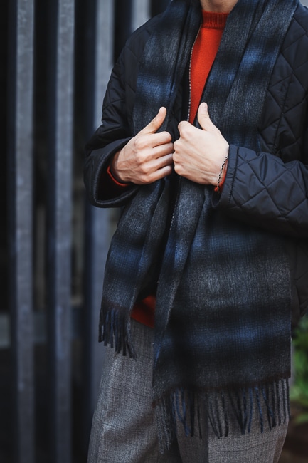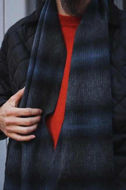 その素材の良さや緻密な織りによる高級感のある表情は勿論のこと、今作はモダンなブロックチェックのデザインも魅力です。