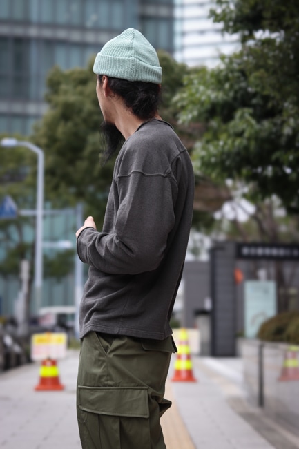 これにより、薄手でサラッとした古着のような味のある生地感が生まれています。