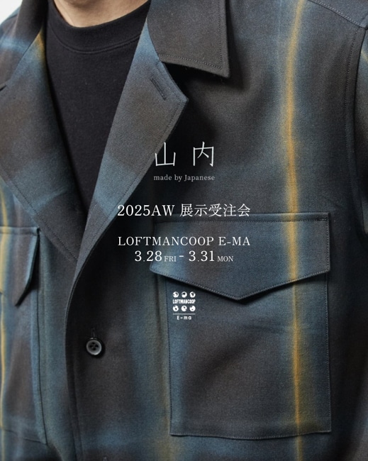 期間中は、山内の2025AWコレクションの全アイテムをご用意させていただき、モデル、サイズをオーダーいただけます。