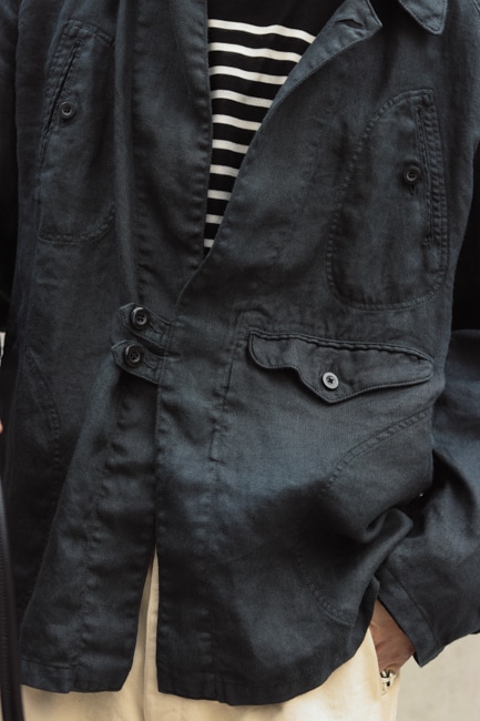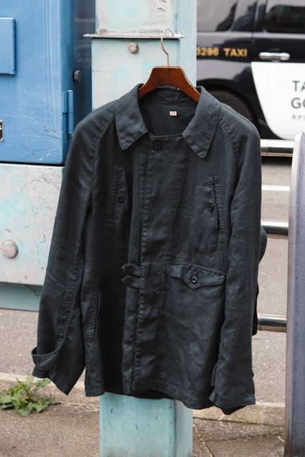 1920s-30sフランスのパーソナルオーダーされたハンティングジャケットを、さらにリメイクされた個体をベースにデザインされており、
