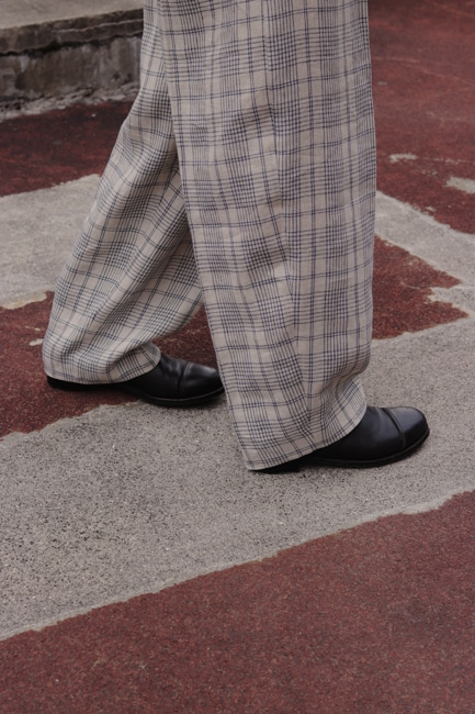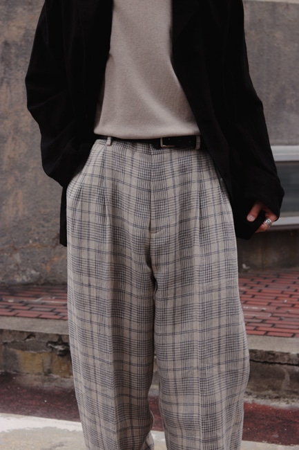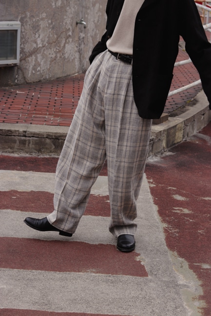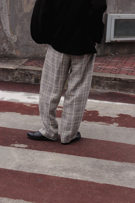 イタリア製リネンチェックを使用したワイドパンツ。