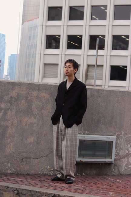 単品使いはもちろん、同素材のブレザーと合わせたセットアップスタイルもおすすめ。