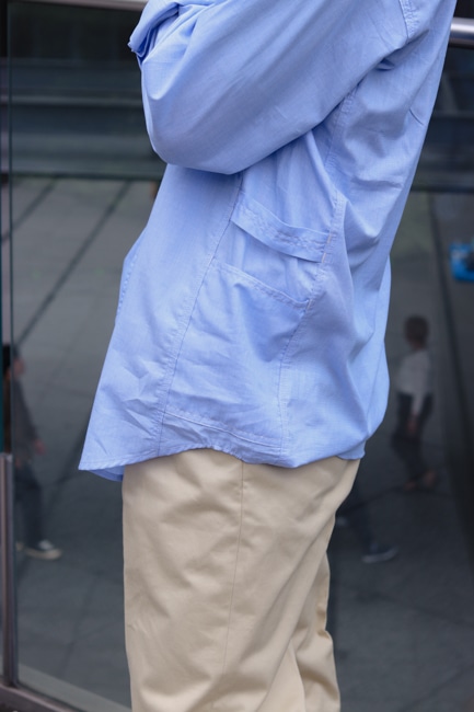 定番シャツとしてワードローブに一着は欲しいシャンブレーシャツです。