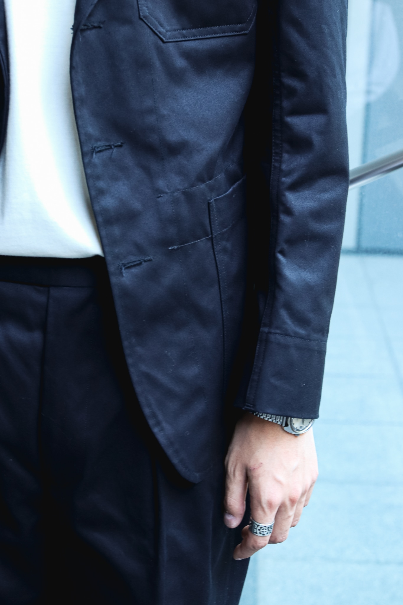 ジャケット,パンツ共に構築的で綺麗なモノ作りです。