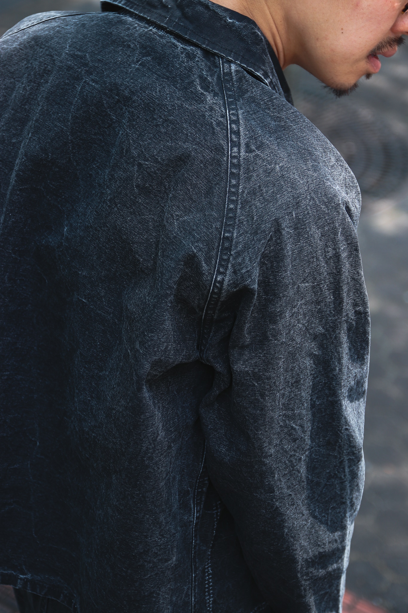 表地は緯糸共に強撚した太番手の糸を使用したハリのあるコットンキャンバス。