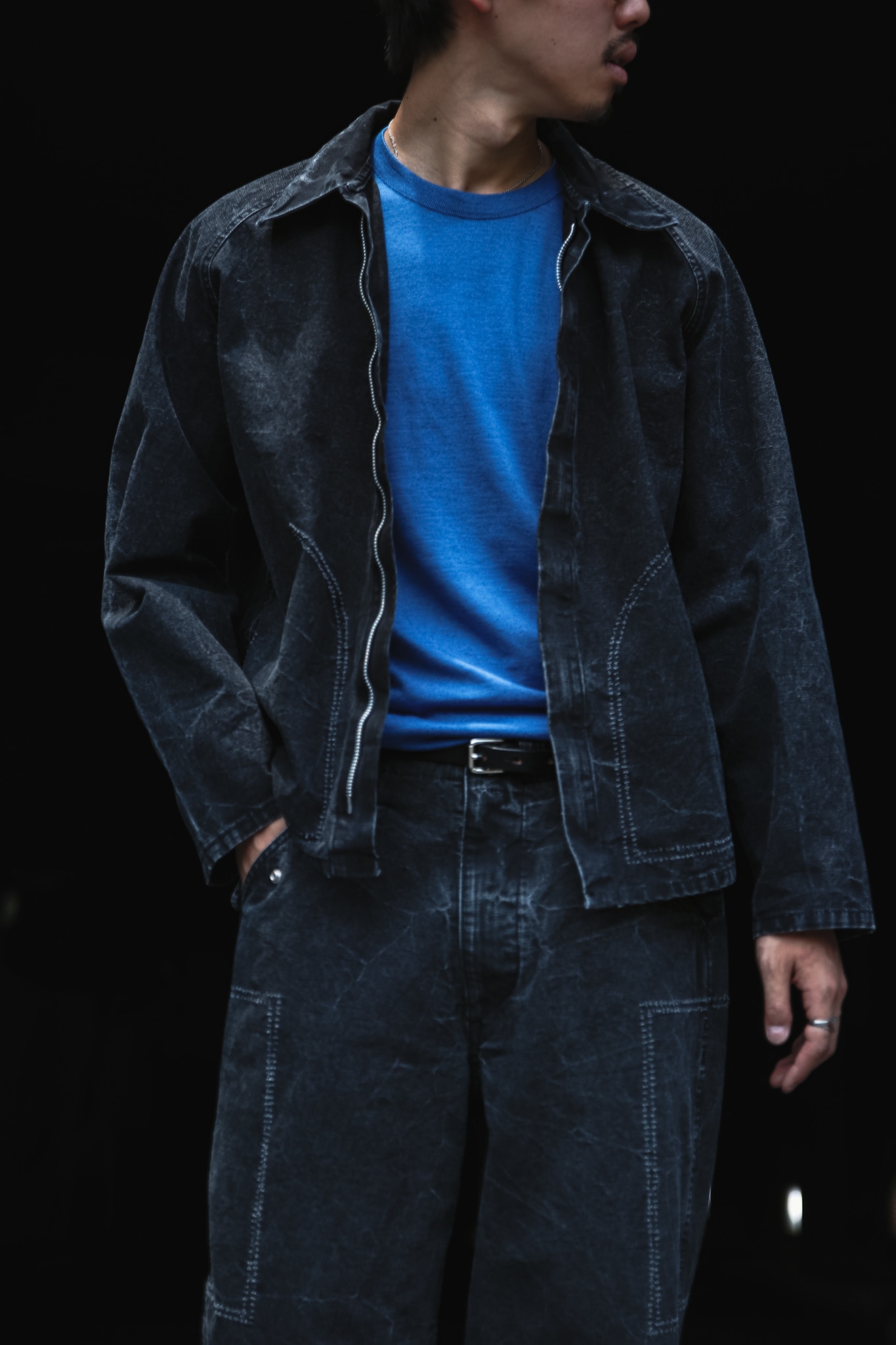 表地との縮率差が生まれ、ファスナー部分のうねりが特徴的。