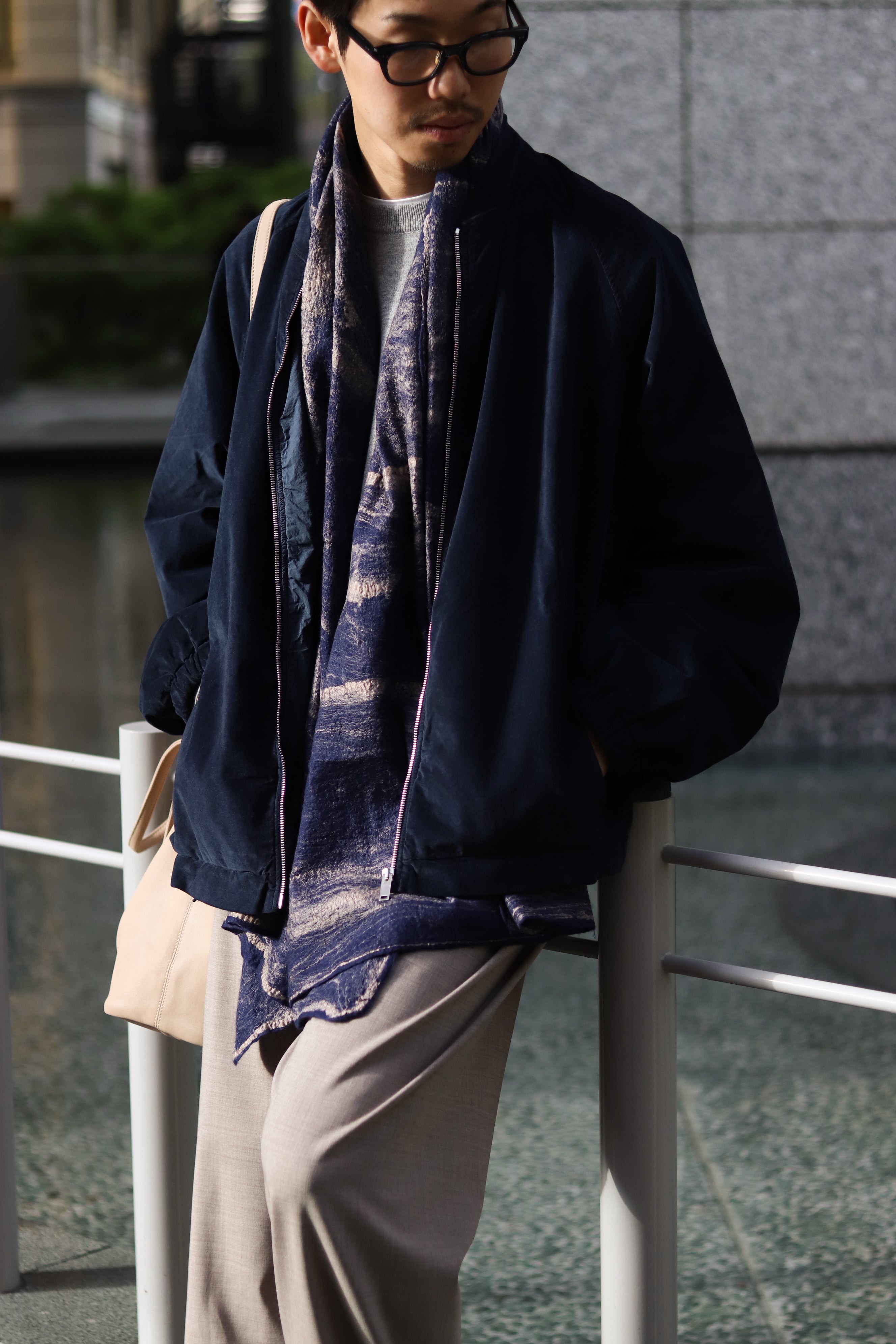 LIGHT200 SILVANA MANETTIの定番的な素材使いである"LIGHT"シリーズ。 自社のラボラトリーにて研究し完成した、独自の製法によるコレクションで、厳選されたカシミヤとシルクのみを使用して、ゆっくりと時間をかけて作り上げたフェルトの大判スカーフです。 薄いメルトンのような縮絨されたウール×シルク素材で、太古の昔からある"フェルト"という製法を研究し尽くして出来上がったSILVANA MANETTIならではのマテリアル。 とにかく軽くて暖かい。 全てが一点物の、唯一無二による芸術的な表情を生み出しています。