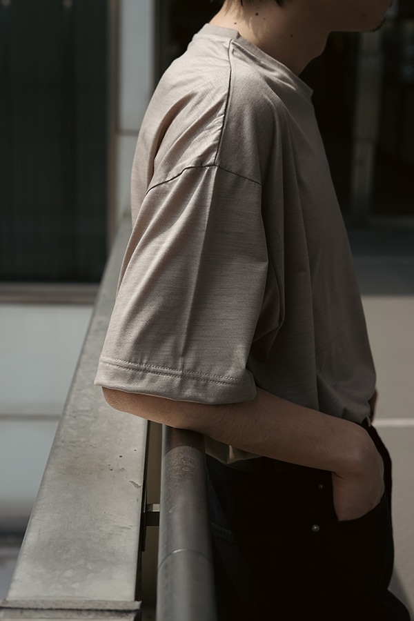 KANEMASA PHIL. 独自の46Gという、スーパーハイゲージの生地に塩縮加工を施すことで独特なシボ感が生まれ、他にはない唯一無二の豊かな表情に。