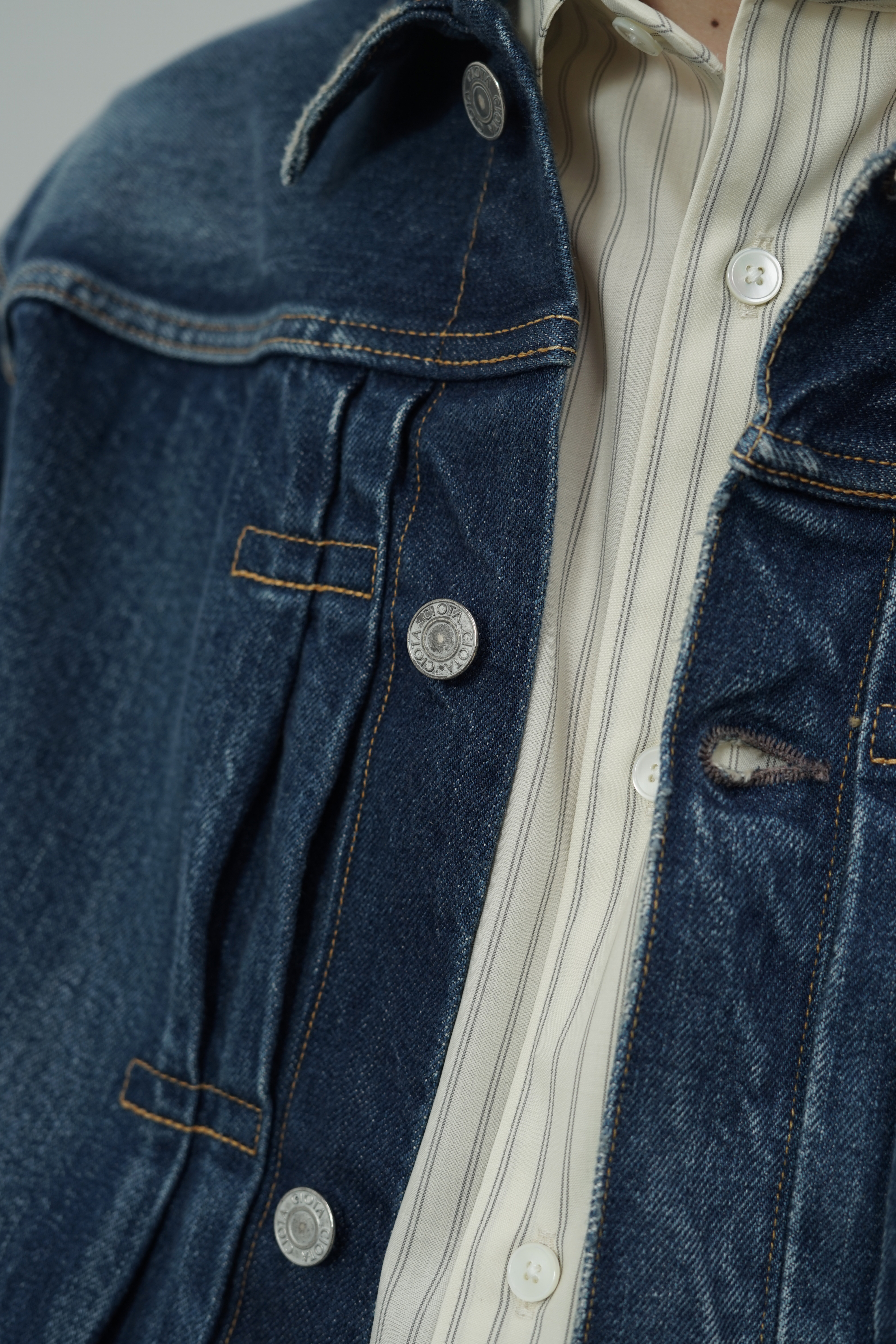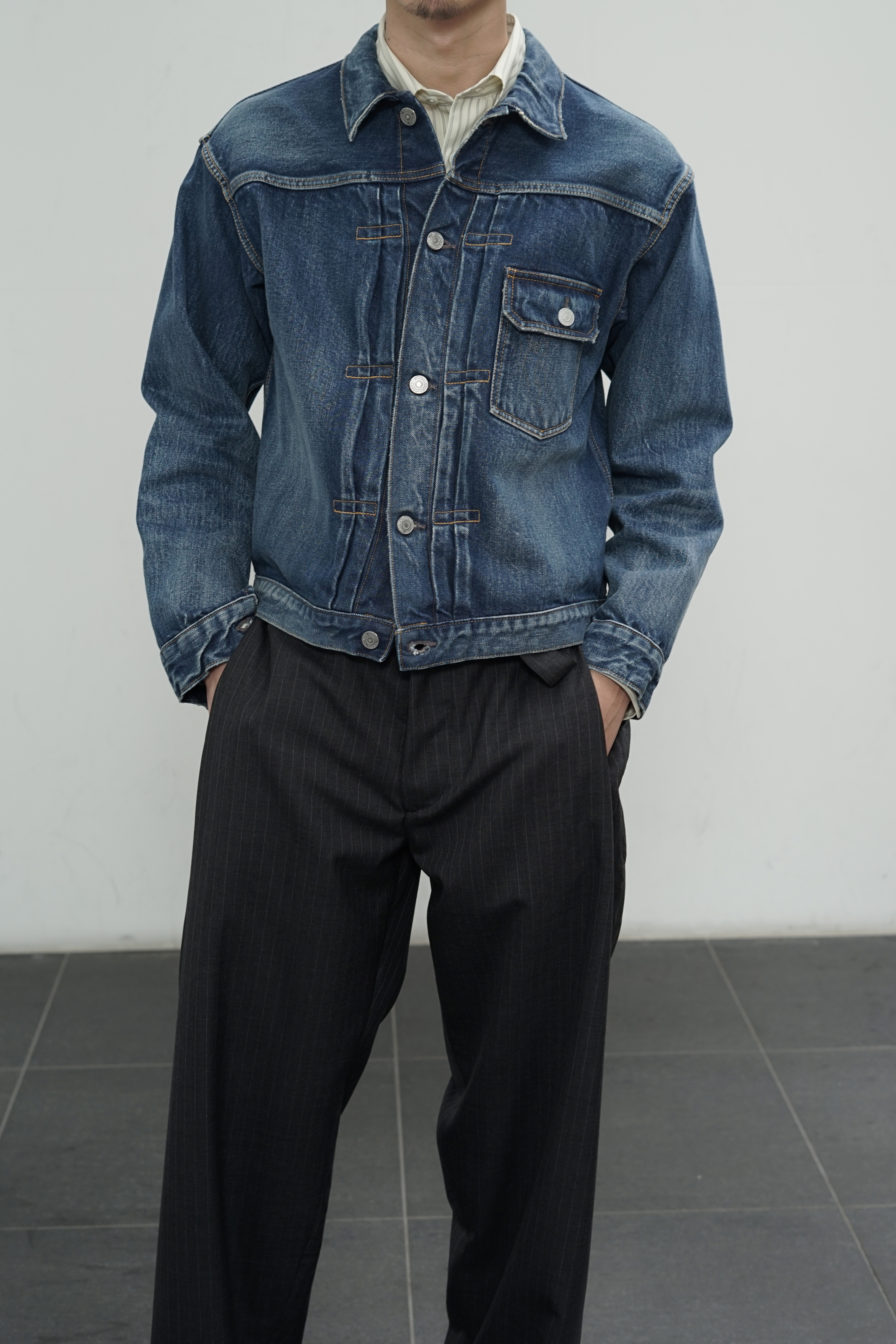 素材はブランドの代名詞、スビンコットンを使用することにより無骨な印象のデニムジャケットですが、