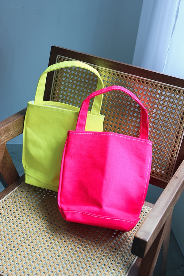ネオンカラーのバゲットトートや巾着ポシェット〈TOUMEI〉など、夏の日差しに映えるラインナップをご用意しております。