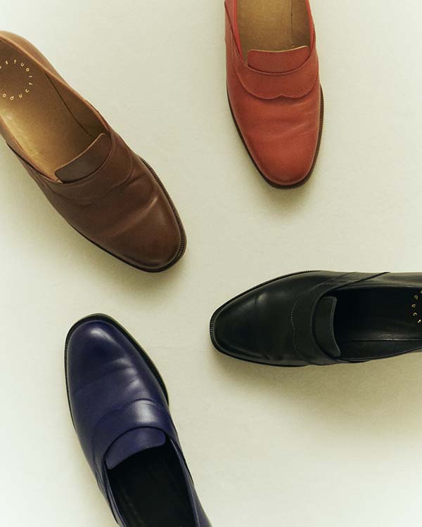ブランド名は、『映像作品、映画の製作における撮影後の作業』を意味しますが、ただ靴を製作するだけではなく、着用方法やケアにいたるまで、その先までを共に考えていきたいという意思が込められています。