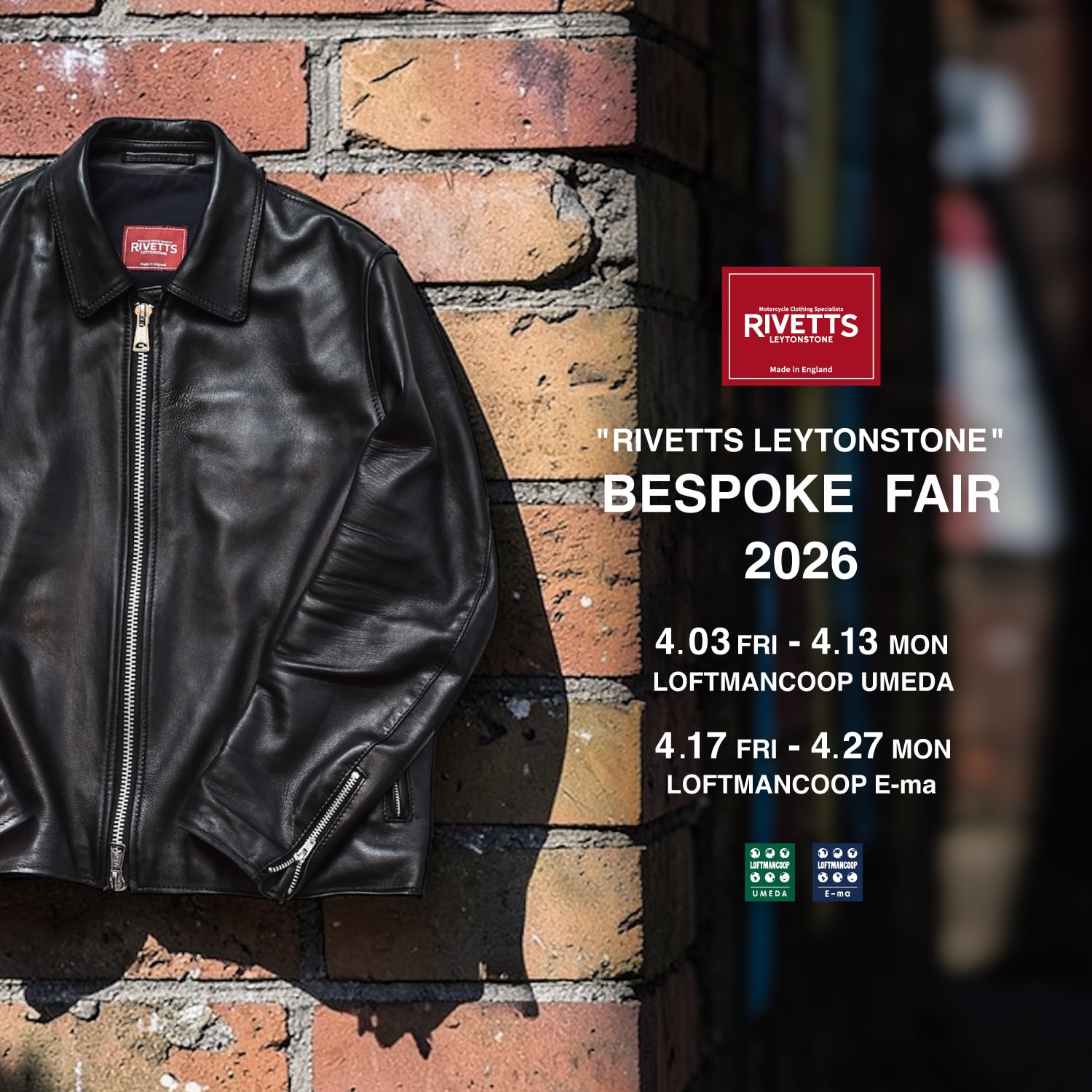 〈”RIVETTS LEYTONSTONE" BESPOKE FAIR〉を大阪・LOFTMANCOOP UMEDA及び、LOFTMANCOOP E-MAにて開催いたします。