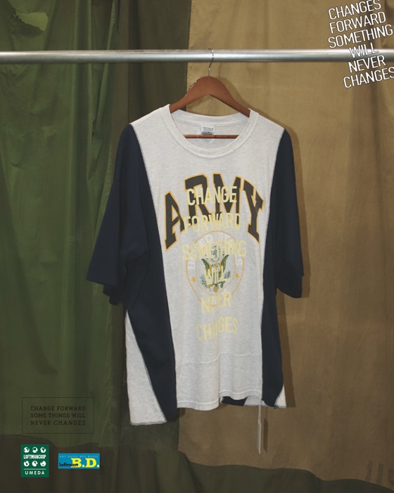 USED TEEを解体し再構築、前身頃と脇部分にUSEDのボディを採用。