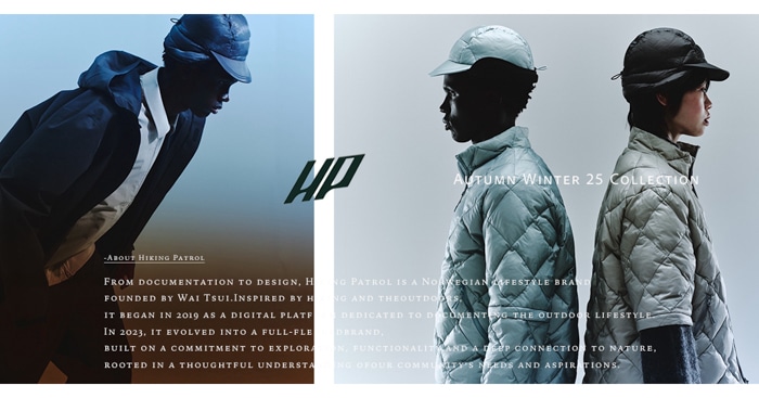 本コレクションは、機能的なシルエット、耐久性の高い素材、控えめなブランディングを特徴とし、都市とアウトドアをシームレスにつなぐデザインを展開。寒さや風雨から身を守ると同時に、内省や再生のための余白をもたらします。〈Hiking Patrol〉は、自然が春に備えて力を蓄えるように、着用者が人生の循環と調和を体感できるコレクションを提案します。
