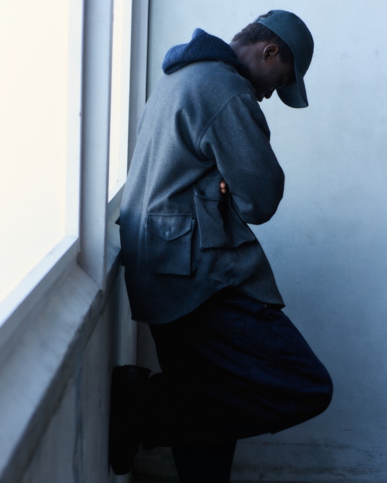 服をパーツとして捉えてスタイリングを組むような、構築的な印象がうかがえる。
