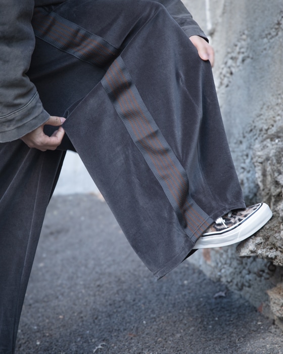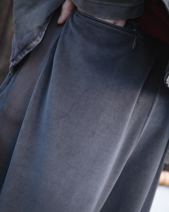 本日は、同モデルの別素材ver.、<H.D. Track Pant-C/PE Velour>も間に合いましたので早速、みなさまにお披露目させていただきます。