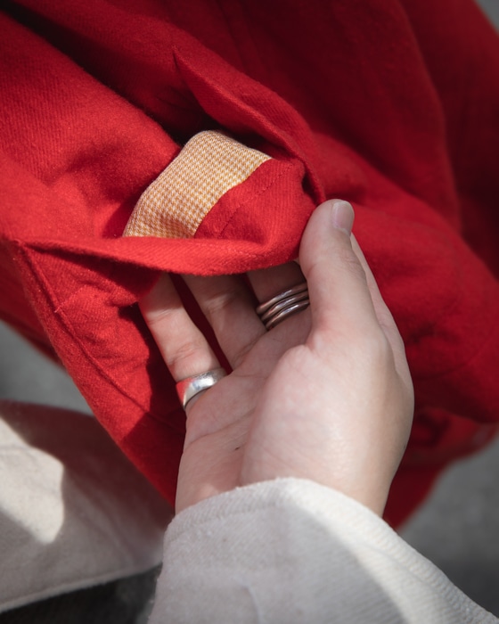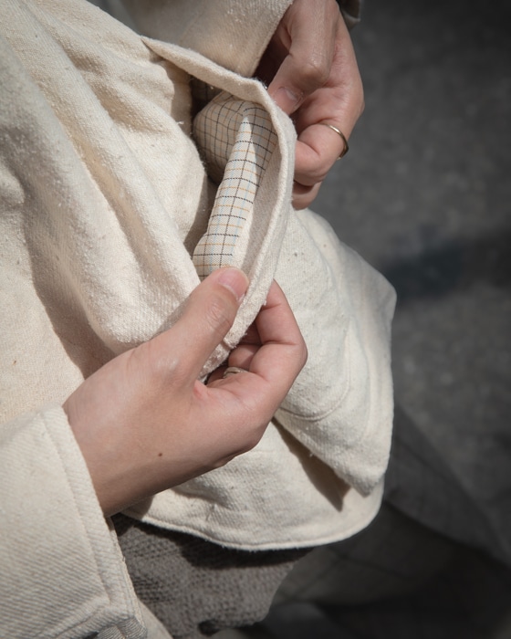 さらに身頃部分のポケットの裏地には、過去のアーカイブファブリックがアソートにて施されています。