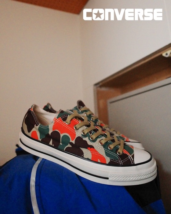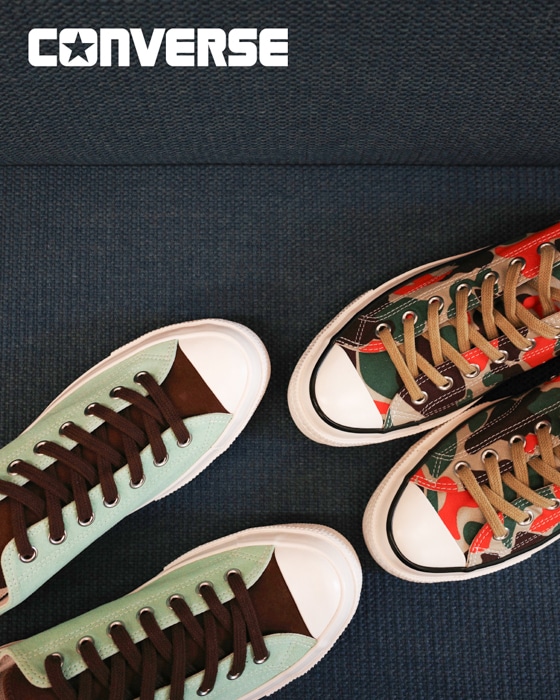 今回、東京・池ノ上のカルチャー発信地として知られるショップ「MIN-NANO」オーナー、中津川吾郎氏 が監修したモデルが登場。2026年1月28日(水)より全国一斉発売予定。本モデルは、アーティスト・中津川吾郎氏ならではのストリート感あふれるアレンジを施したカモフラージュ柄「83カモ」と、軽やかで爽やかな印象を与えるミントグリーンの2アイテムを展開。トラディショナルなALL STARのフォルムに、中津川氏特有のユーモアや大胆かつ繊細な色使いが融合することで、足元からスタイリング全体に新鮮なアクセントをもたらします。是非みなさま、ご注目くださいませ。