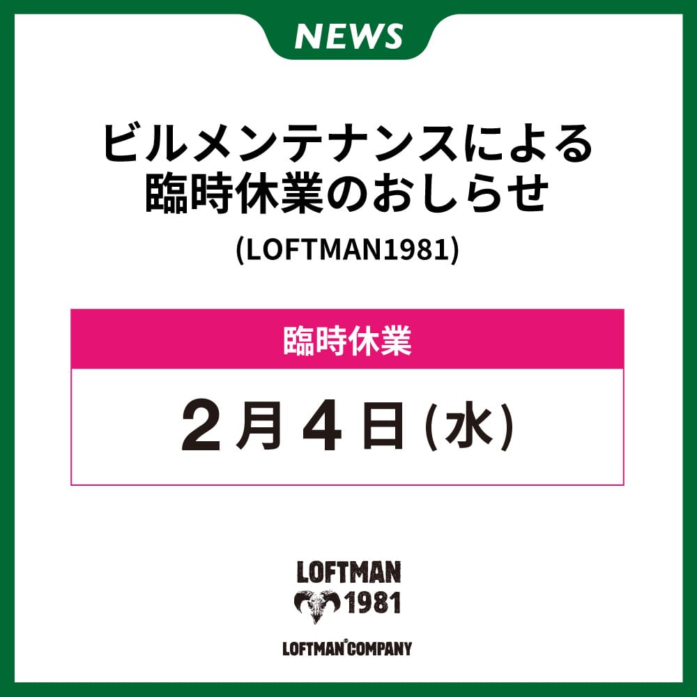 LOFTMAN1981におきまして、ビルメンテナンスのため2月4日(水)を臨時休業とさせていただきます。